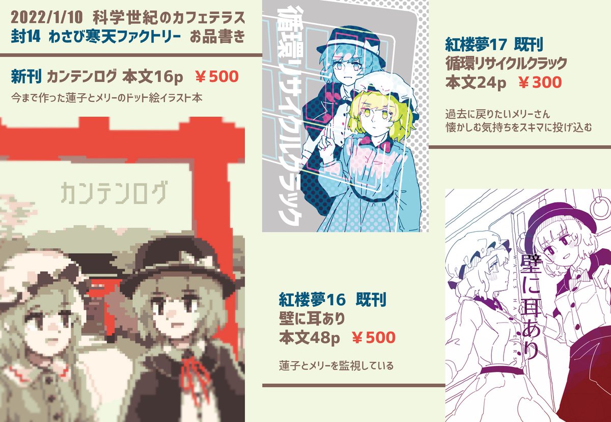 9/11 #科学世紀のカフェテラス 【封01】吉田屋。 おしながきです。新刊あります。新作グッズはミニメモ。 在庫ある本はすべて持っていきます。どうぞよしなに。 #酉京都2022 #酉京都2022告知 #京都秘封 #京都合同