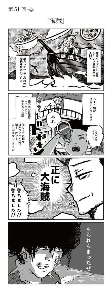 第51回-🍚「海賊」 【京都精華大学創作漫画同好会碧の八角では新入部員を募集しています。興味のある方はDMまで!】 #京都精華大学 #アオパチ #4コマ漫画 #漫画が読めるハッシュタグ #マンガが読めるハッシュタグ #春から京都精華 #春から京都精華大