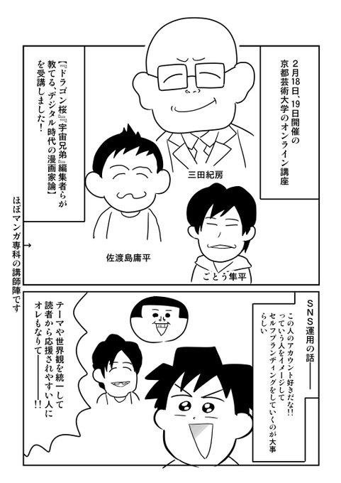 三田先生の「マンガ家論」受講。 沢山描く、先のことを考えても仕方ない。特別なことを作ろうとしない。身近な人生が面白い。余裕を持って間に合わす。徹夜しない。無駄も大事。 肩の力が抜けてるようで常に正しい選択をしてらっしゃる感じがかっこよかったです。 #京都芸術大学 #コルクラボマンガ専科