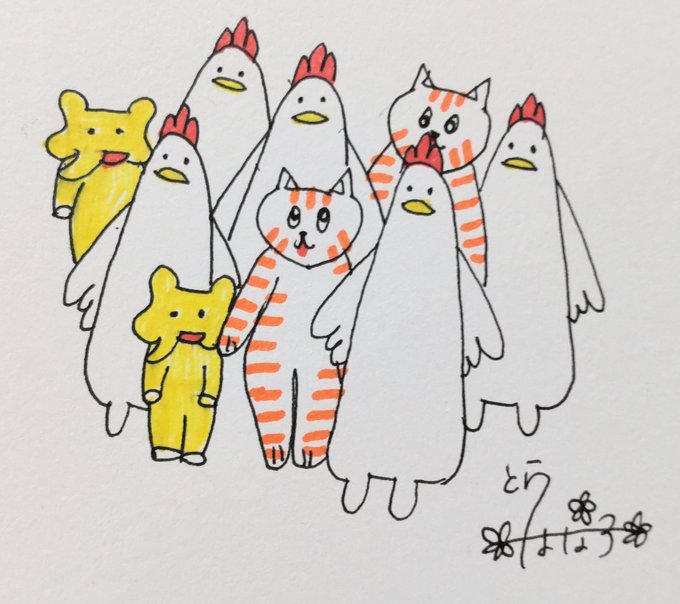 おはようございます!! #人口調査記念日 ニワ密度高めですね!! 今日も素適な日曜日を〜🤗 #絵描きさんと繋がりたい #みんなで楽しむTwitter展覧会 #イラスト #油性ペン #マッキー