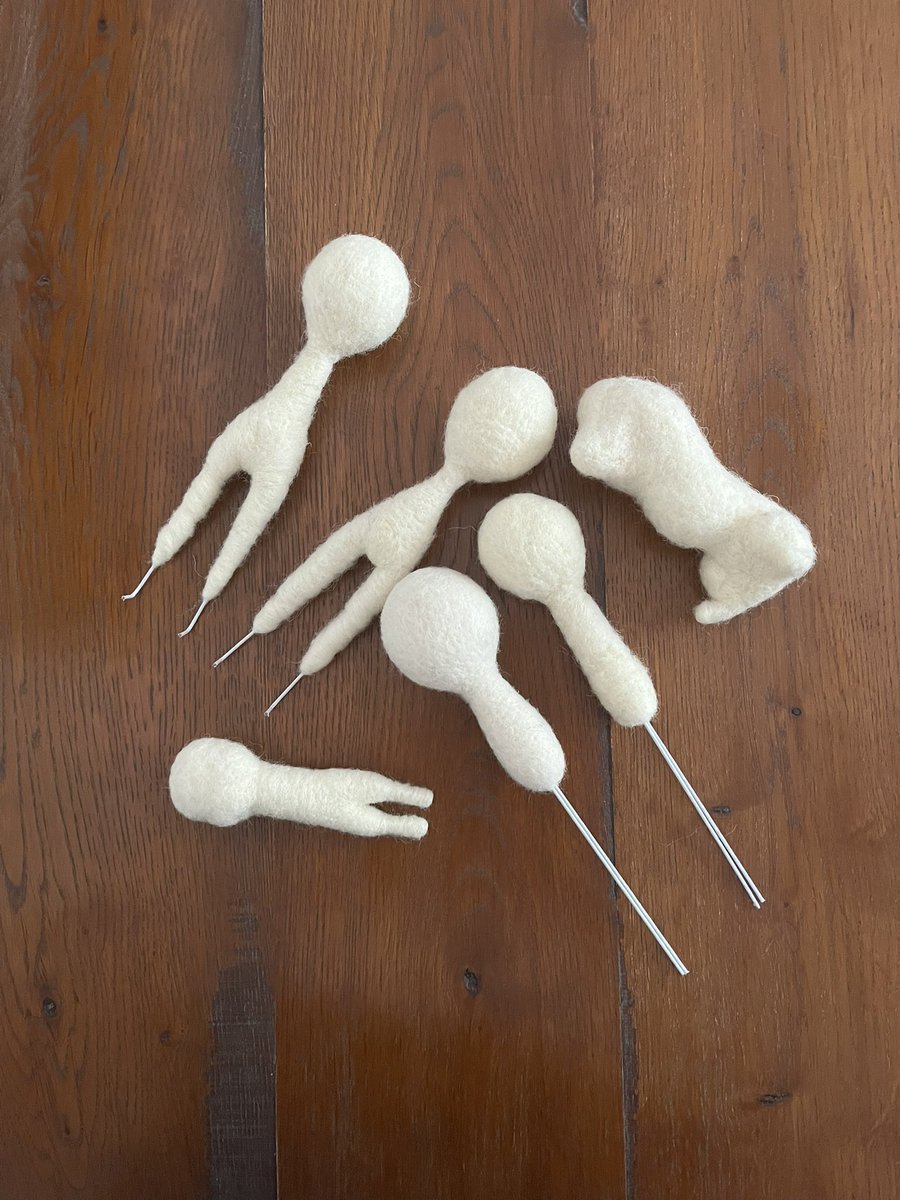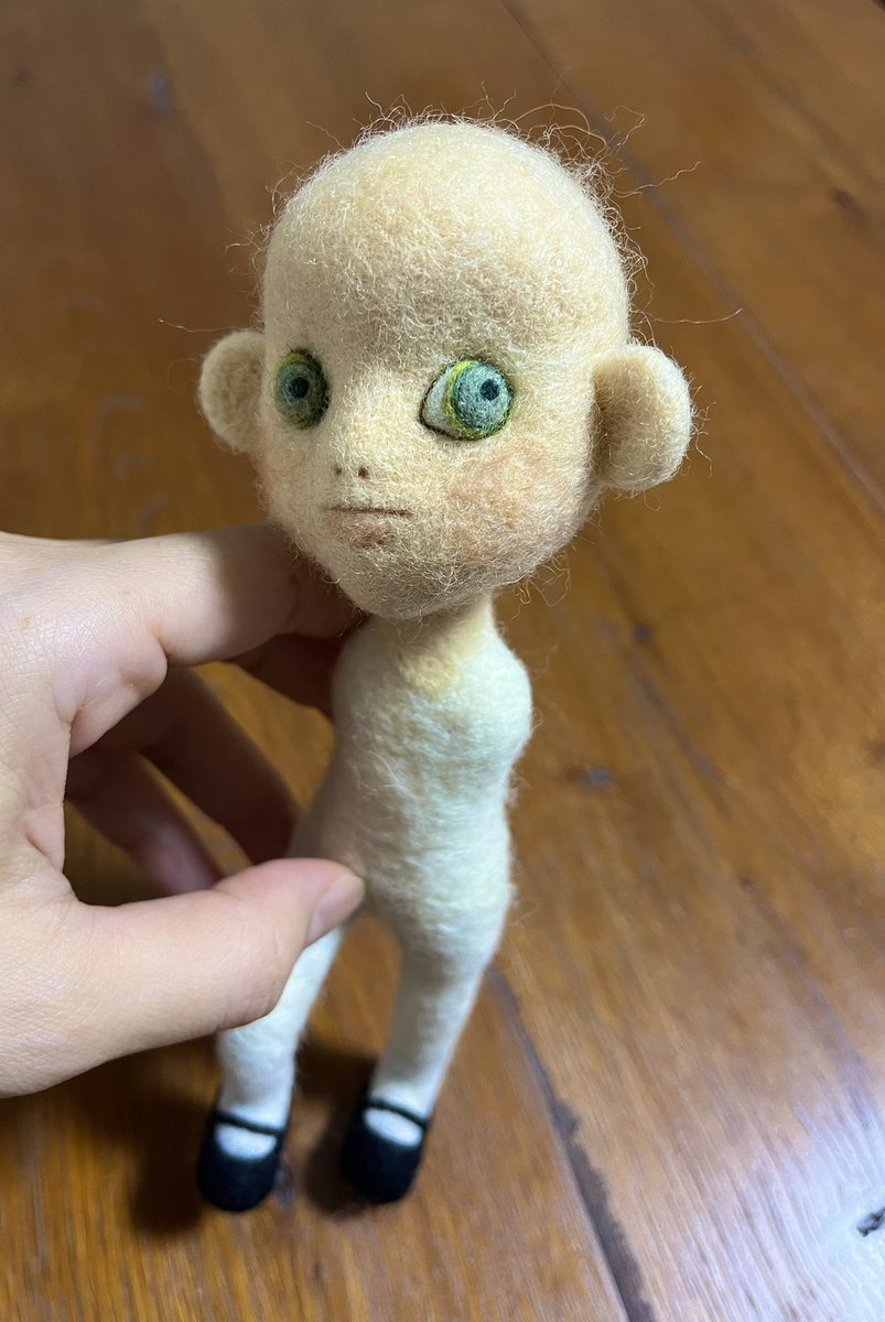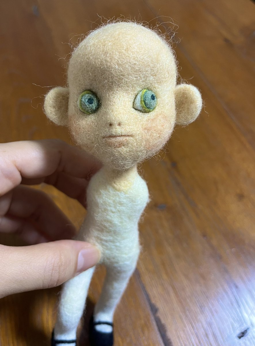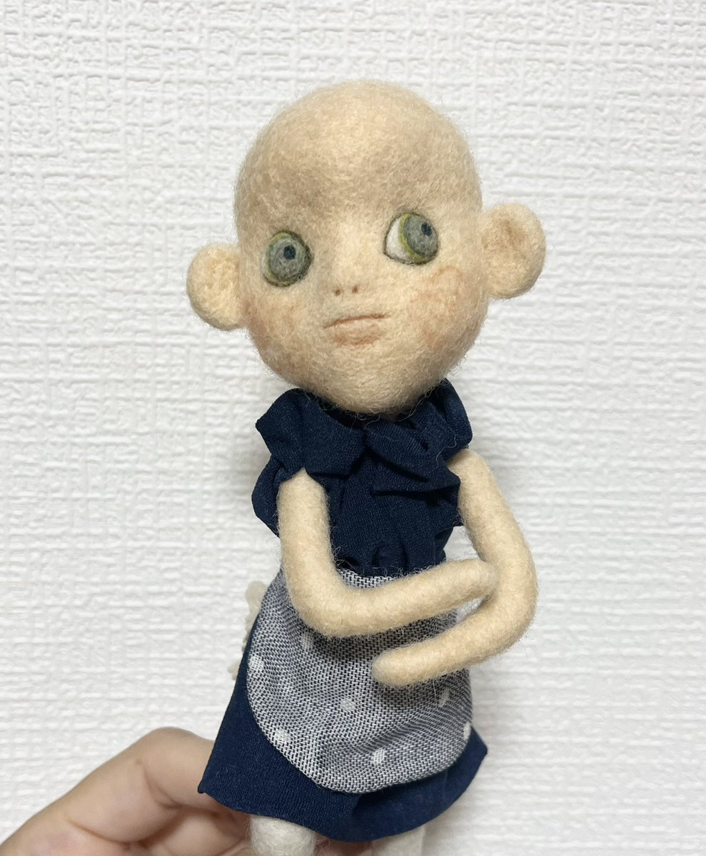 「#不思議の国のアリス」完成しました! 丸い木の上に所狭しと乗っています。クロケットのシーンです。 手にはスティック代わりのフラミンゴ、足元にはボール代わりのハリネズミ、アリスの両側にハートのトランプも配置しました。 #羊毛フェルト #needlefelting #ハンドメイド人形 #人型 #人形制作