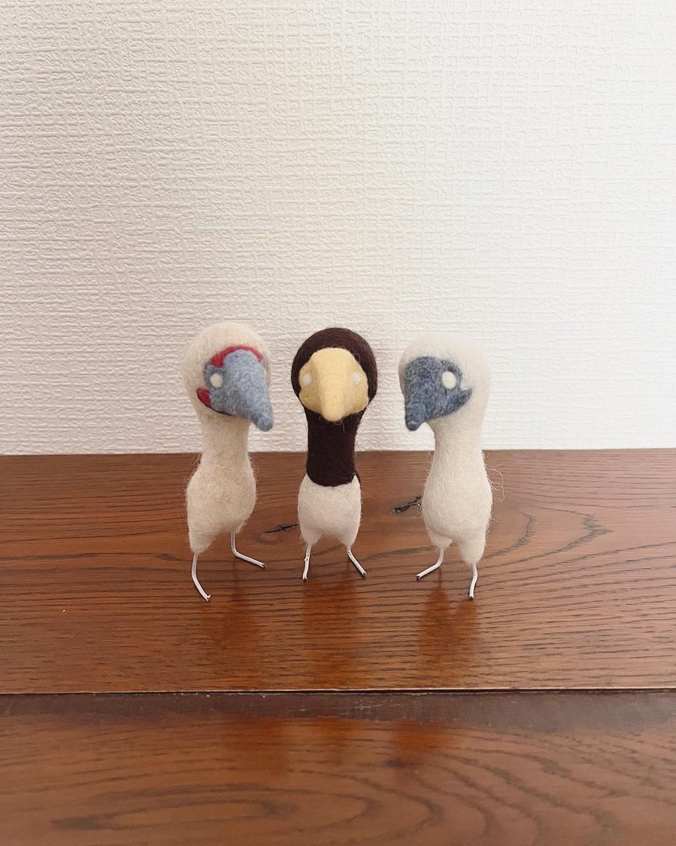 .この子はふつうのカツオドリ〜。 これで、青足、赤足、黄足が揃います。 #羊毛フェルト #アカアシカツオドリ #アオアシカツオドリ #needlefelting #ハンドメイド #人形制作 #羊毛氈