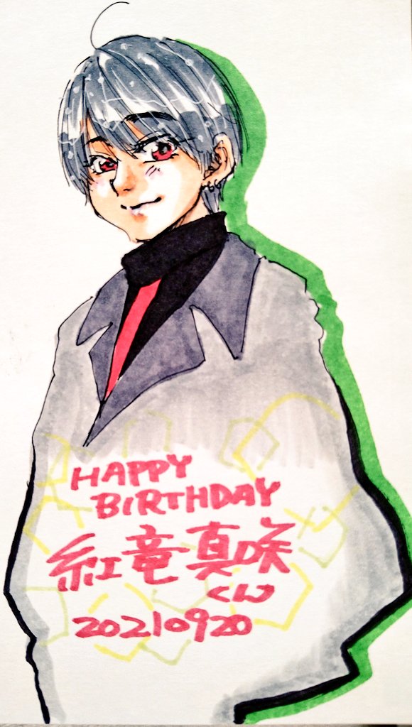 真咲くん、お誕生日おめでとうございます!!!🎉🎂 HAPPY BIRTHDAY!!! 🎉🎂 #紅竜真咲誕生祭2021 #まさきこに鮮やかな虹を掛けて行こうぜ #人生紅色Party_time #風男塾イラスト