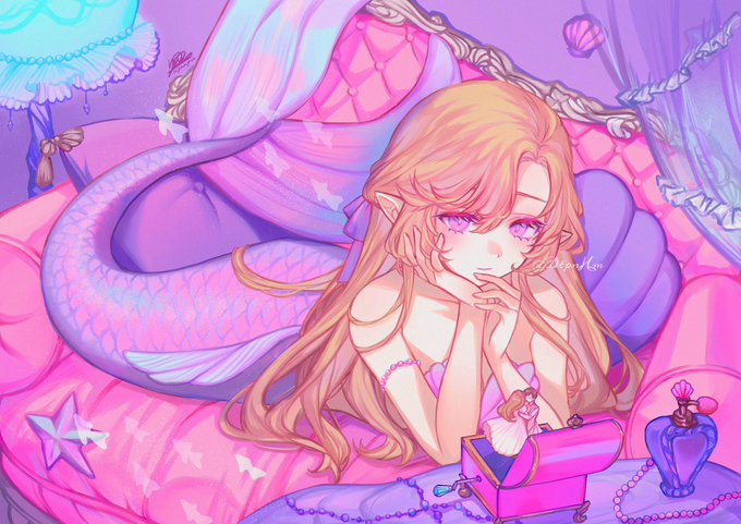 #人魚の日 #絵柄が好みって人にフォローされたい 一日遅れちゃいましたが、6月30日は人魚の日だったそうなので、人魚の新作をお届けします。透明感のある作品を高頻度で投稿するので、絵柄が気に入ったら、フォロー、RT♥してくれるとうれしいな。