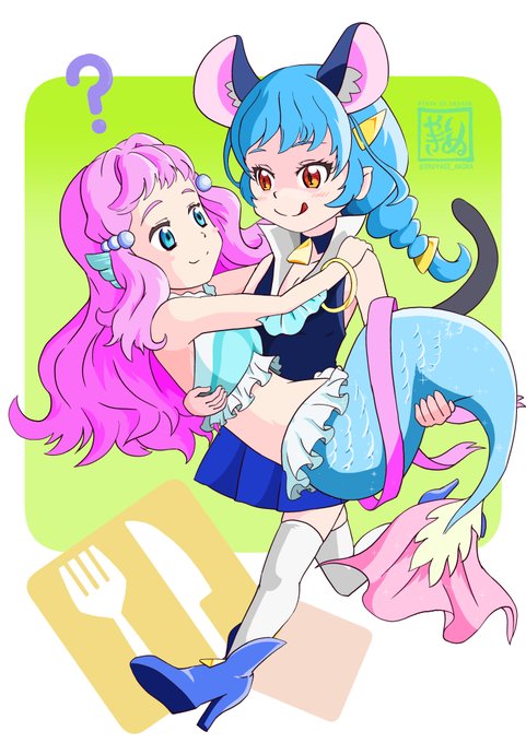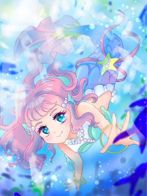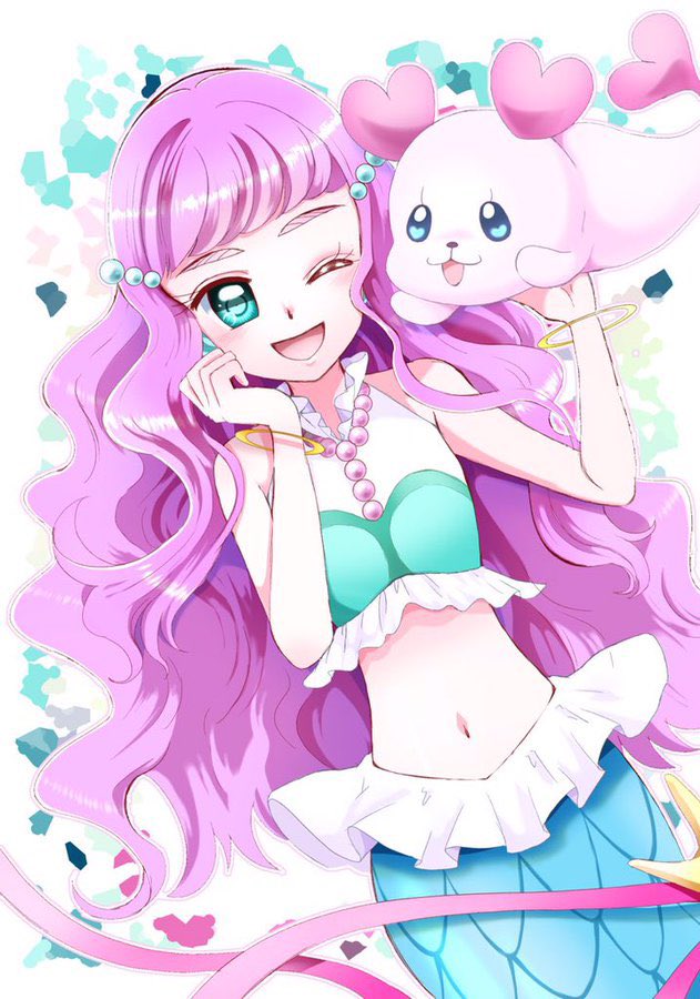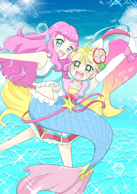 #人魚を見るとストレスが減るらしい お便乗~|・x・)ノシ トロプリ前に描いた物なんですけども フォロワーさんの中に人魚好きな方がいらしてですね… 色々なキャラで描かせていただきました☺️ (続く↓) #precure
