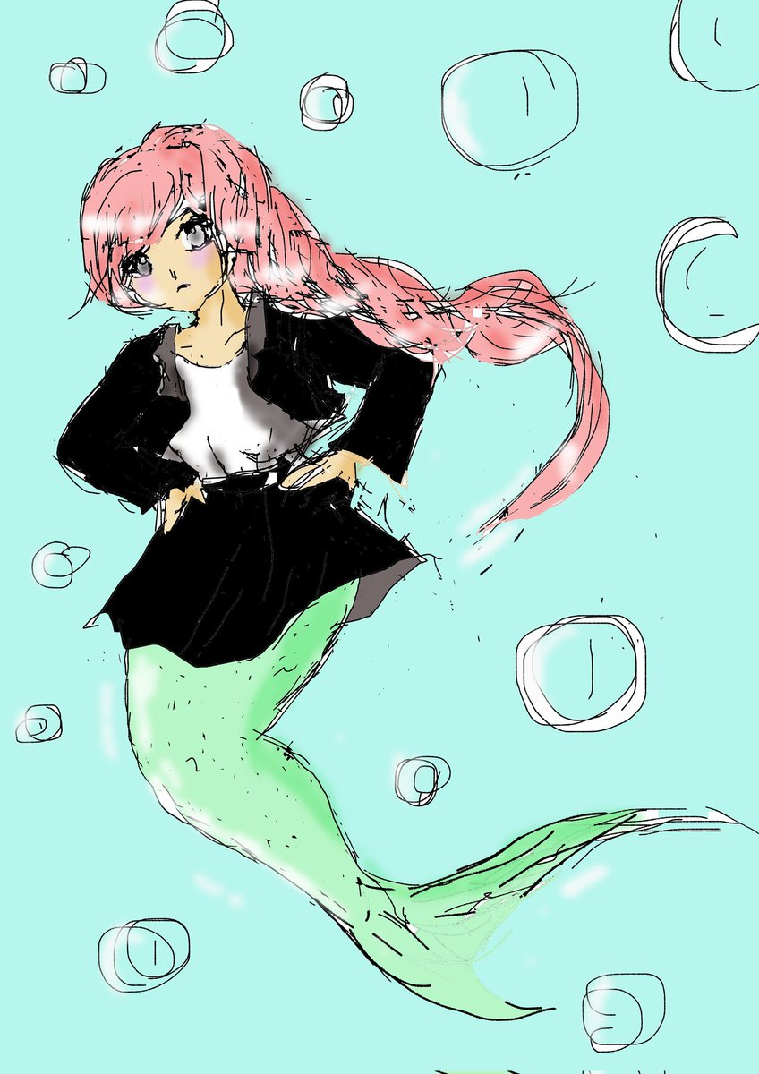 #人魚シリーズ ✕100均タッチペン 人魚OL🤗 ちょっとカラーラフっぽくなってしまいました💦💦 Laugh layout of Mermaid I tried to draw by a touch pen😁 #デジタルイラスト #タッチペンイラスト #イラスト #illustration