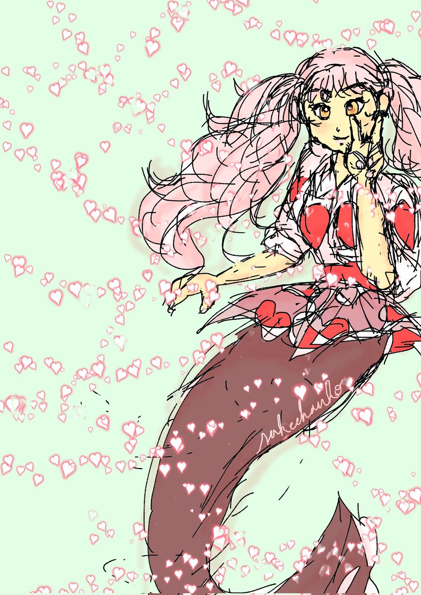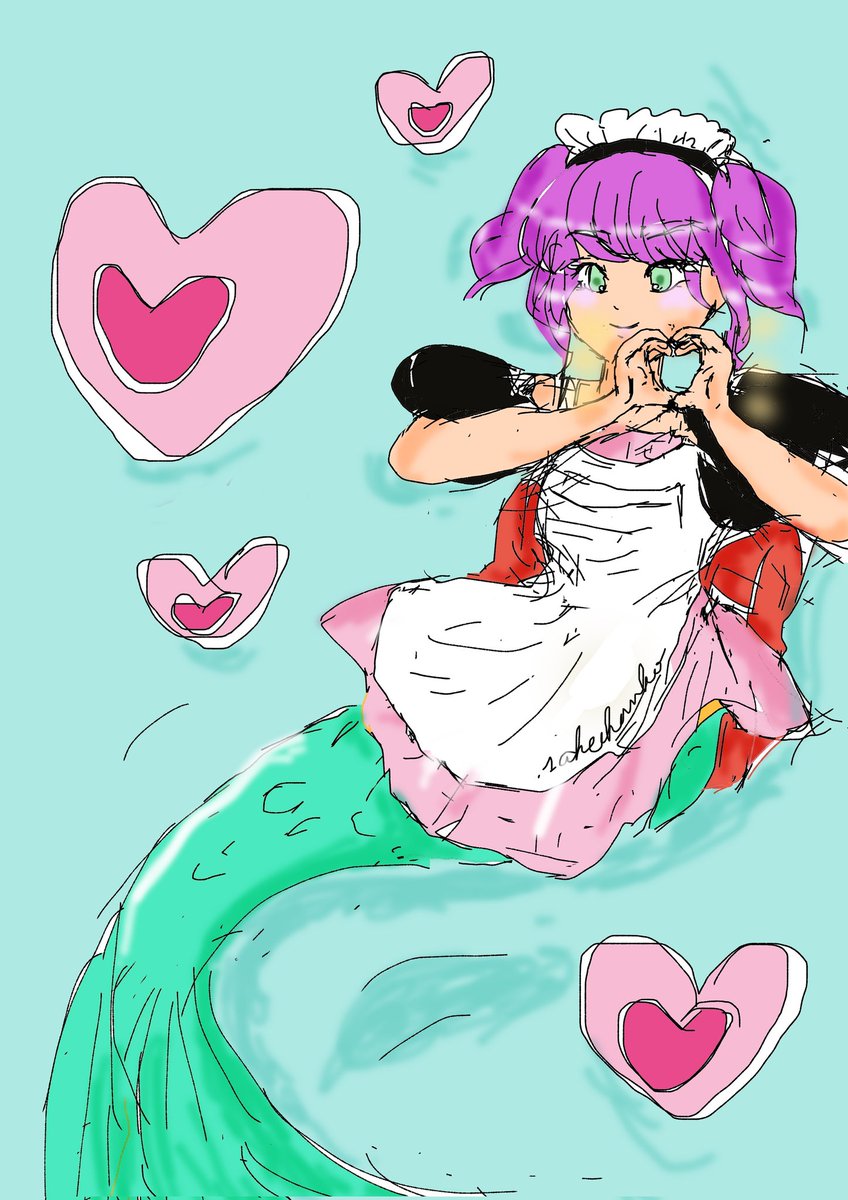 #人魚シリーズ 女 ✕トランプ ✕100均タッチペン ハートマーメイド🥰 Heart Mermaid ✕a touch pen😊 #デジタルイラスト #タッチペンイラスト #イラスト #illustration