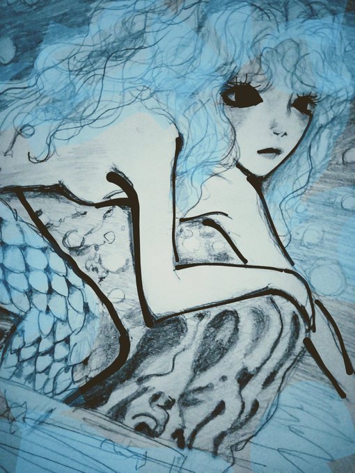 #背中で語るシリーズ カゼトキさんの背中で語るタグをお借りしました♡♡ちょっとお顔が見えてしまっているけど…趣旨とズレてたらすみません💦 「ボブヘアでスレンダーな人魚だっているんだから…」 #人魚 #絵描きさんと繋がりたい #絵柄が好みって人と繋がりたい #イラスト好きさんと繋がりたい