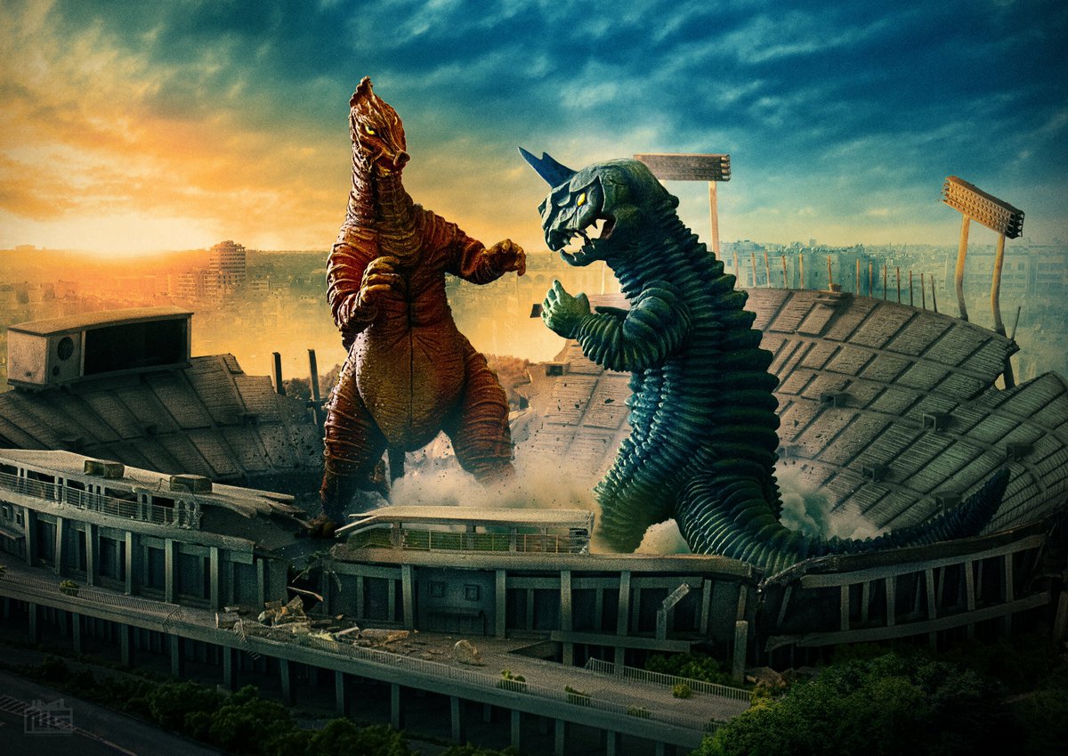 仁工房さん制作のイノウエアーツ「熱海城の決戦」のジオラマを、Photoshopでデジラマ化した第三弾!iPhoneのカメラで超広角で撮影した写真を加工しました。 #デジラマ #キングコング対ゴジラ #kingkongvsgodzilla #仁工房