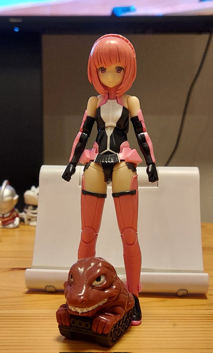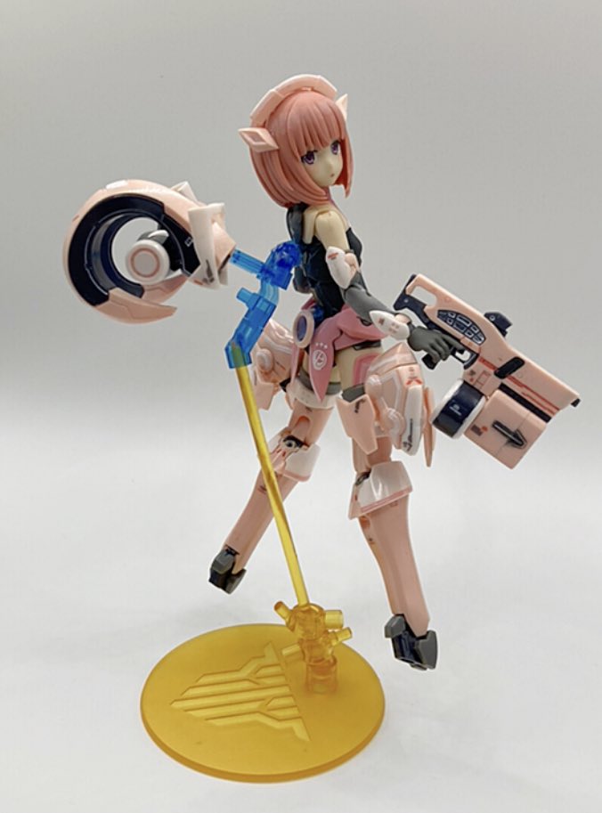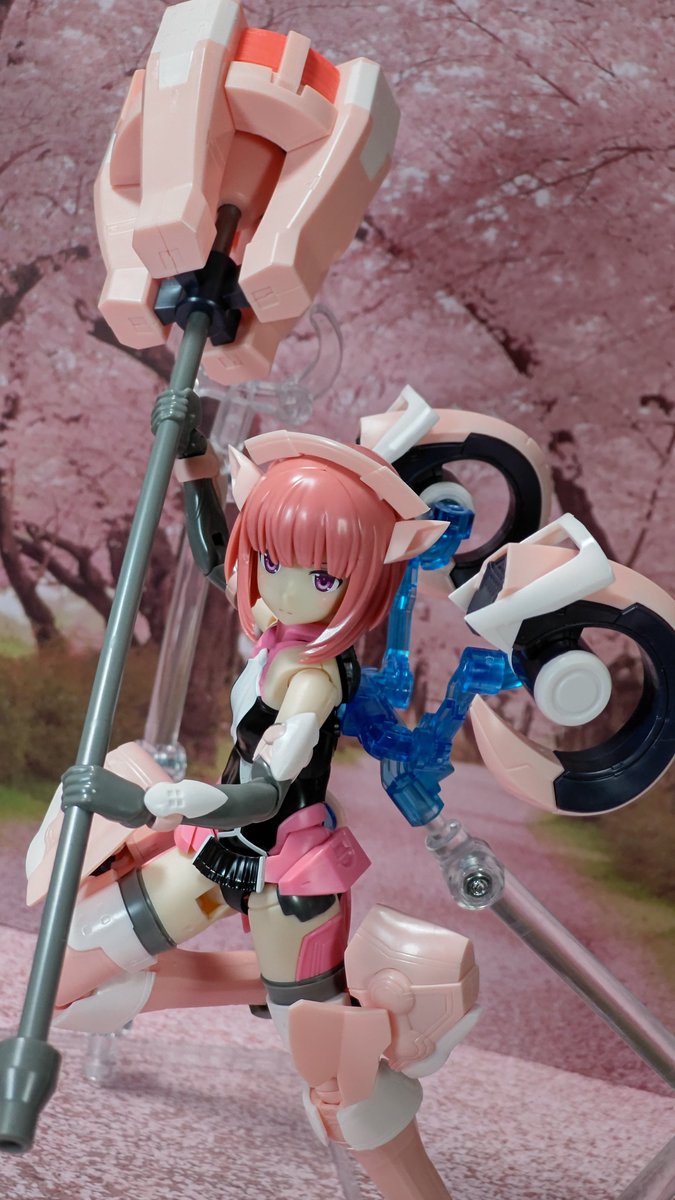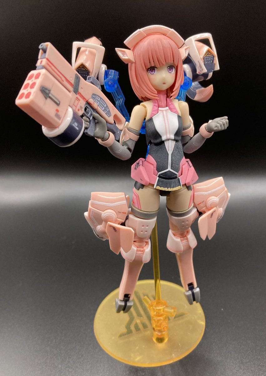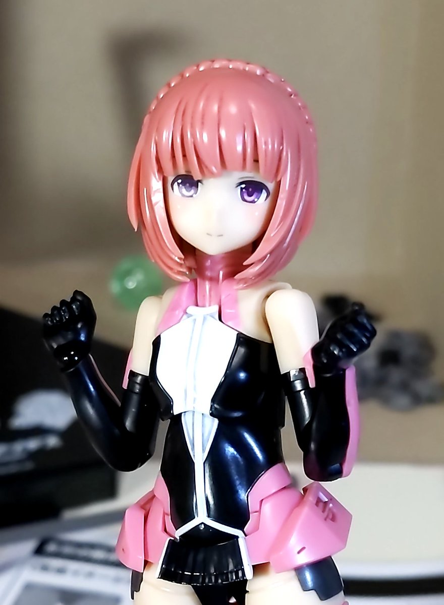 相河愛花、ギア装着。 白基調のノーマルから、ピンク基調のアナザーへ。 叫びの表情がないから、威勢こそ控えめだけど、キリッと顔での戦闘ポーズはコレはコレでアリ。 #オモ写 #メガミデバイス #相河愛花 #仁愛 #すんごい関節の渋み #SP蹴るのは当初からの構想