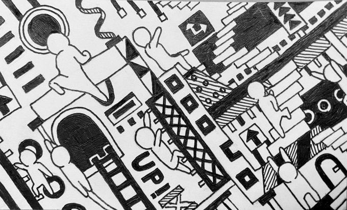 title : 登り続ける今 (メッセージカードサイズ) #絵描きさんと繋がりたい #イラスト好きな人と繋がりたい #アナログ絵描きさんと繋がりたい #絵描き #アナログイラスト #絵 #アート #ペン画 #アナログ #今