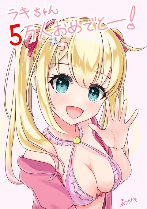 ラキちゃん、チャンネル登録者5万人おめぴょこです!!🐸🎉✨ 今回は記念イラストを描きました~(*'ω'*) YouTube『Laki Station』 → youtube.com/channel/UCp77Q… #Vtuber #虹河ラキ #ぴょこ民 #lakigaki #今このVtuberが伸びる