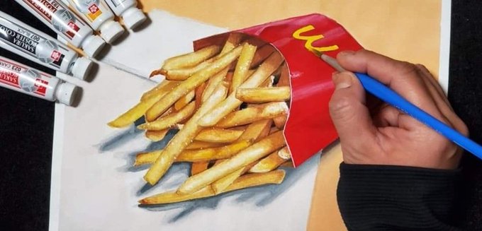 #今まで隠してたんやけど ずっと誰も突っ込んでこなかったので今言っちゃお。これ、Mサイズの入れもん風に描いてるけど、実際はSポテトなん。 #イラスト #ポスターカラー #絵描きさんと繋がりたい