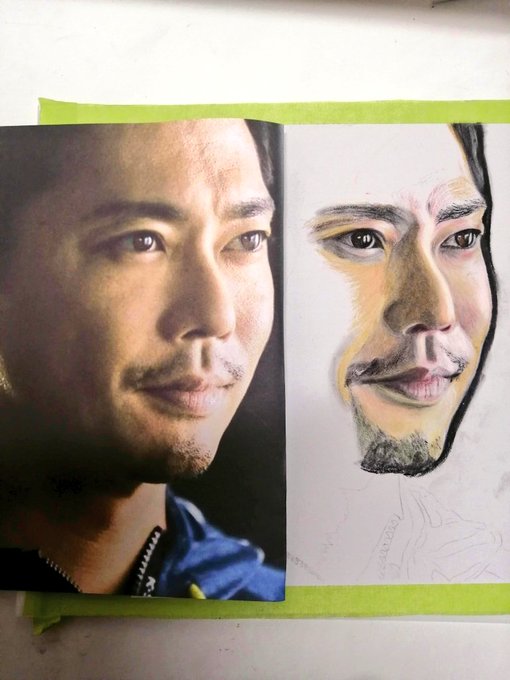沢山のイイネ、RT、コメントありがとうございました🥰 今井翼さん②枚目の途中経過です❣️ 背景にはパンパステルを使いました。 #今井翼 #wip #色鉛筆イラスト #色鉛筆 #イラスト #パステル #絵描きさんと繋がりたい #イラスト好きな人とつながりたい