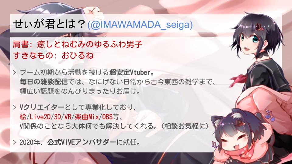 🌸配信 毎昼12:30 showroom-live.com/6c7dc2853582 水曜20:30 web.iriam.app/redirect/profi… note note.com/imawamada_seiga FANBOX pixiv.net/fanbox/creator… BOOTH imawamada-seiga.booth.pm Skeb skeb.jp/@IMAWAMADA_sei… 干し芋 amzn.asia/54yHxJk HP imawamada-seiga.wixsite.com/official-site #今和間田せぃが