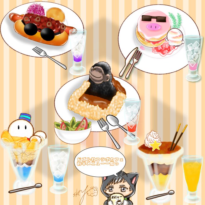 今回コラボカフェを開いて頂き、楽しく素敵な空間を味わえました!本当にありがとうございました!感謝を込めてのイラストは全メニューです♪ #ドズル社アート #ドズル社コラボカフェ #ドズってる #ぼんさん何してんすか #はよ見ろやあ #見るかもわからん #誰でも見れますねぇ #今回のねこおじ