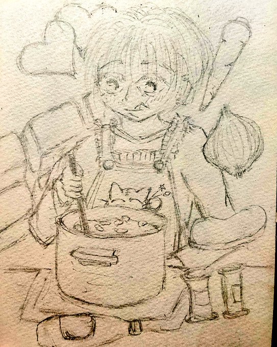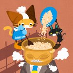 ちょっと多くない?って量のニンニクのみじん切りと、これでもか!って量の玉ねぎのみじん切りをひたすら炒める。これができた時点で美味しいカレーが出来たようなもの。それが大事MAN。 #ネコキャット #猫と仕事とお料理と #今夜はカレー #グラフィックデザイン #イラスト #illustration