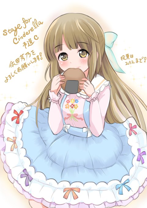 可愛いよしのんをよろしくお願いいたします✨🙏 100票投票するたびによしのんにおせんべい🍘が与えられます(嘘) ドリーミーリボンサロペットよしのんに着てほしいのも兼ねて応援描き #SfC予選C #依田芳乃 #今夜もよしのんかわいいのん