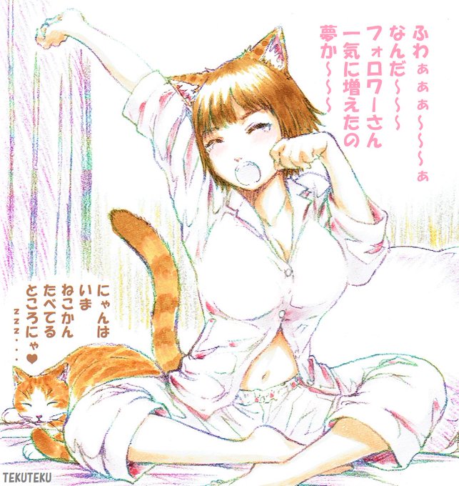 なんかの拍子で一気にささっと2,700人フォローしてくれないかな~🤭 #目指せフォロワー1万人 #今年の目標 #フォローミー #猫好き #illustration #オリジナルイラスト 🐱🎶