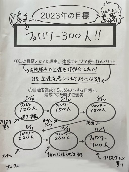 今年の目標はこれだぁ‼️期日も決めて🔥 目指せフォロワー300人👍 #今年の目標 #絵柄が好みっていう人にフォローされたい #お絵描き好きな人と繋がりたい #絵師さんとつながりたい #絵描きさんと繋がりたい #冬の創作クラスタフォロー祭り #お絵描き好きさんと繋がりたい #イラスト好きと繋がりたい