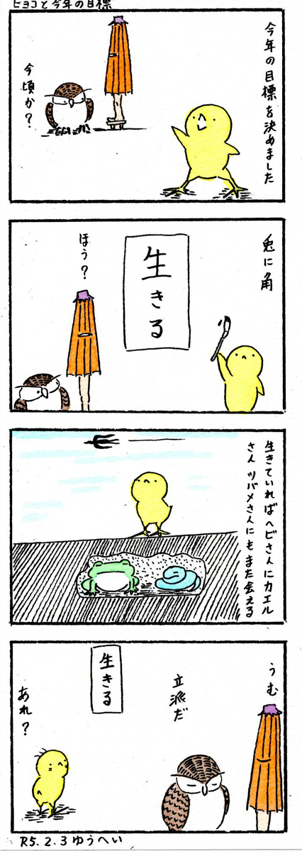 よき夜を 2023-01-28 今年は笑うのだ mikepunch.net/2023-01-28/ @mikepunch358より 「おとな美術部」描き初めの会で描いた 今年の目標などのお話です。 #今年の目標 #おにぎり猫のものがたり