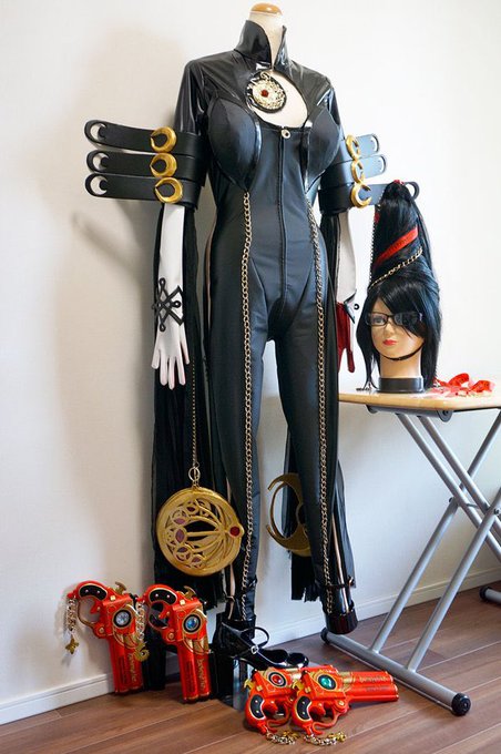 #今年一番気合い入れて作ったコスプレ衣装見せて ベヨネッタ無印。 分かりづらいけど黒の生地を3種類使い分け、チェーン全て手縫い。 おかげで衣装も造形もウィッグも作る技術がレベルアップできました🙌