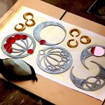 #今年一番気合い入れて作ったコスプレ衣装見せて 蓬莱山輝夜のアレンジ衣装です🌕👸 2枚目の前掛けは前後左右に配置しており、それぞれ満月/新月/四季(原作立ち絵のスカートの模様)を表現しています 4枚目は十二単イメージのリボンです🎀