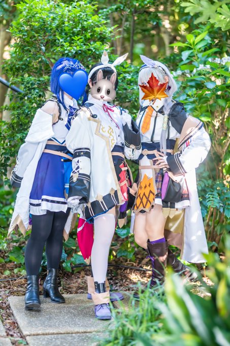 全部気合い入れて作ったしお気に入りだけど特に頑張ったのはJK組のお揃いファンタジー衣装💙🐰🍁 布もお揃いにしてめちゃくちゃかわいい😭ジャケット脱いでもかわいい🫶 #今年一番気合い入れて作ったコスプレ衣装見せて