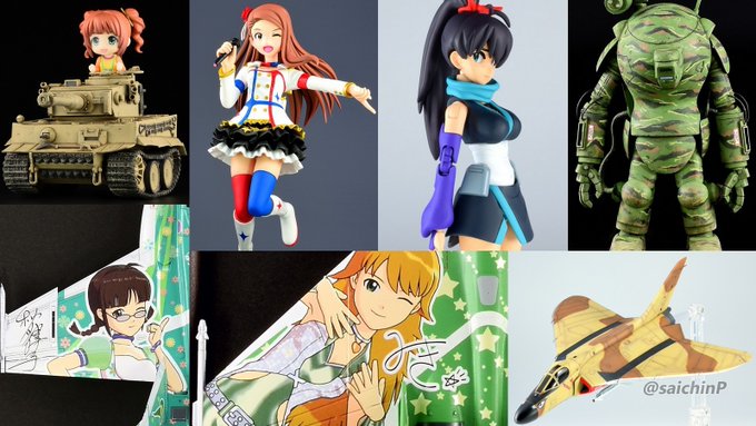 #今年作ったプラモ晒そうぜ #今年作ったガレキ晒そうぜ 2022年、左上から右に MENG MODEL ティーガーI うさPハウス 水瀬伊織(ガレキ) Figure-rise Standard ダイバーヒビキ wave 1/20 ラクーン ハセガワ 1/72 F/A-18F ハセガワ 1/72 Su-33 タミヤ 1/72 F4D-1