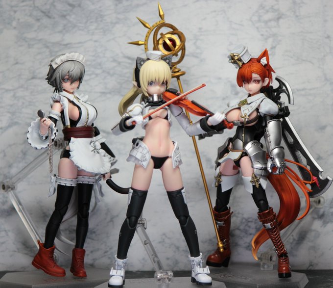 #今年作ったプラモ晒そうぜ #今年作った美少女プラモ 素組みはそこそこ組んだけど、全塗装までしたのはこの3体だけですねぇ 全員配色が同じになってしまったのは、反省すべきなのか自分らしさと思うべきなのか