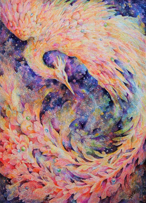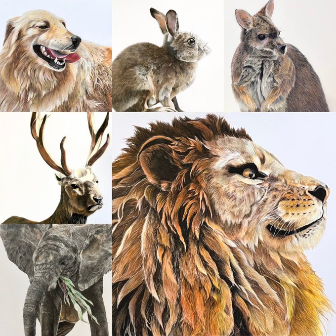 #今年度完成した作品を見せあおう 植物と動物のテーマは変わらずですが シーンを描き込む方向に変えつつあります。 一枚の作品として仕上げるよう心がけました。 (タップすると全部見えるかもです)