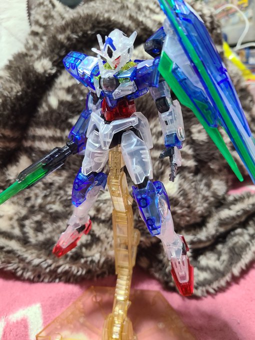 お店で見つけたときは、凄い嬉しかったな😊大好きなクアンタのクリアカラーバージョンです😆 イケメンですな(*/∀\*) かっこ良すぎて、いっぱい写真撮っちゃいました(〃^ー^〃)#今年最後のプラモ見せてやる #ガンプラ好きとつながりたい #ガンプラの画像を貼るとRTされると聞いて #ガンプラ