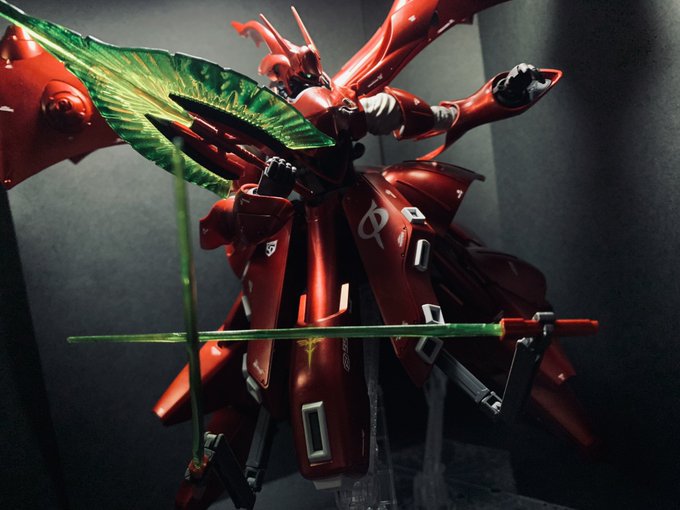 ナイチンゲール完成👏② しかしまぁデカール貼りが本当に大変だった。。。 大きいから照明も大変😂 難産だったけどかっけー👍 #今年最後のプラモ見せてやる #ガンプラ #ガンプラの画像貼るとRTされると聞いて #ガンプラ好きとつながりたい