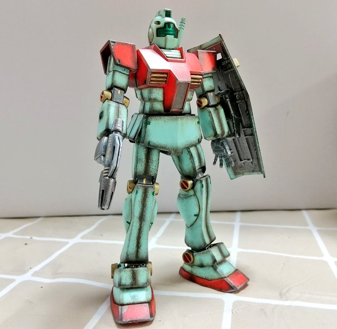 なんとか年内間に合った。ジムカッコいい。ウェザリングマスターでくどい位にシャドーを入れてつや消しして完成! #紅白プラ合戦2022 #紅白歌合戦も近いので紅白のキャラを晒せ #今年最後のプラモ見せてやる #ガンプラ好きとつながりたい #ガンプラ