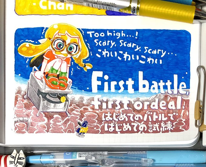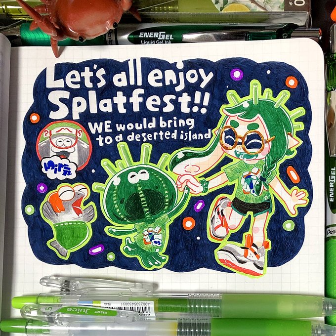スプラ3のマイイカはグラッシーちゃんです。 初めまして! 一応改めてご挨拶。 ノートに描くことにこだわりボールペンで描いてます。 よく失敗もするけど(今回は左下、黄色のハズが青で描いちゃった💦)気にせず写真アップするよ! よろしくね🙇♂️ #スプラトゥーン3 #今日のグラッシーちゃん