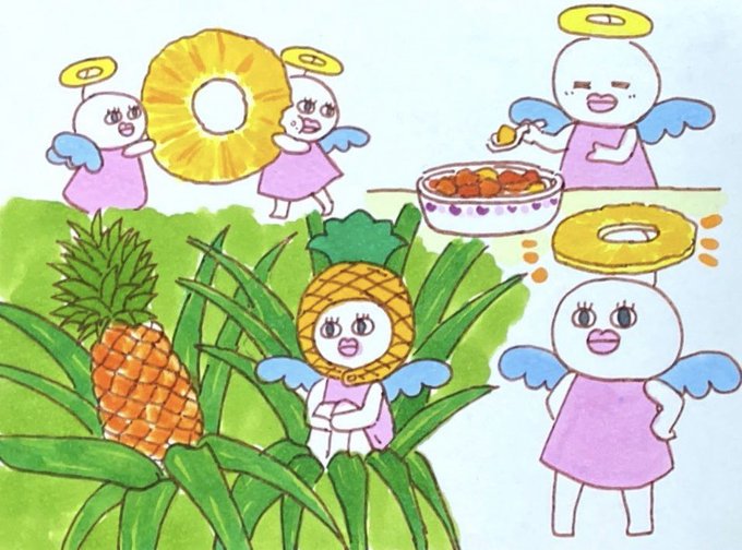 #今日の天使ちゃん パイナップルの花言葉ように、完全無欠な天使になるわよ、おほほ…👼♡🍍 #イラスト #illustration #かわいい #可愛い #純白 #天使ちゃん #コピック #パイナップル #pineapple #酢豚 #私にとってあなたは最愛の人なのよ #西洋の花言葉なんですって #おほほ