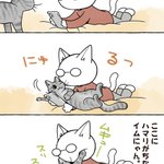 #今日の山野絵 #山野家登場犬猫紹介カード 5日目は きなこちゃん🐈 全く人馴れしていない状態で保護手術ワクチンの後、我が家へ。 引きこもって顔も確認できない状態から、イムにゃんがお世話してだんだん心を開いてくれて… こっそり添い寝してくれてるの、知ってます😊 明日は海きゅん❗