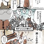 #今日の山野絵 #山野家登場犬猫紹介カード 6日目は 海きゅん❗ まるたんの散歩中、川そばの藪から飛び出てきたところを保護。 謎のコミュ力と不思議なポーズで周りを翻弄中。 きなこちゃん(現在攻略中)以外と仲良しです。 明日は ねねこちゃん🐈