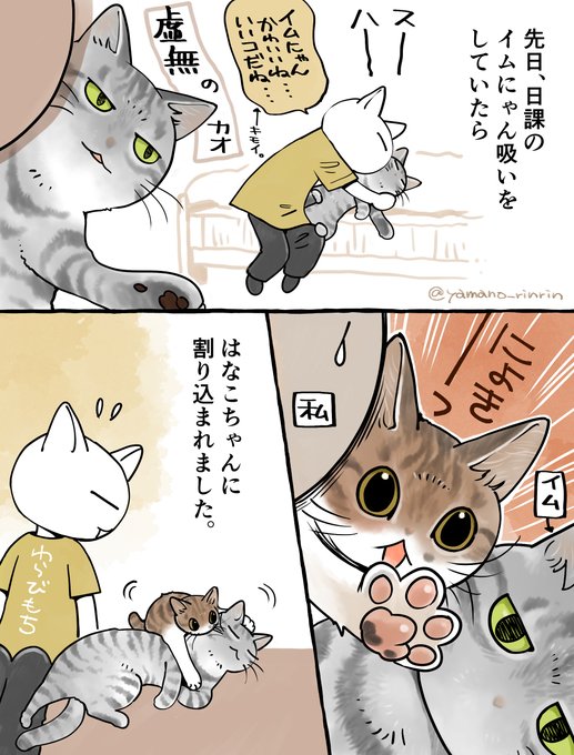 #今日の山野絵 #山野家登場犬猫紹介カード 4日目はイムにゃん🐈 ボランティアさん宅から譲り受けた彼、 子猫の頃から多くの猫さんに囲まれて育ったようです。 年下の4匹のお世話をする(してくれた)聖母(♂だけど)。 添い寝と毛繕いのプロ。 明日はきなこちゃん✨