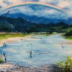 #みんなで楽しむTwitter展覧会 #今日はなんの日 #米の日 #アート #イラスト #art #ilustration #パステル画 8月18日→ハ十ハ→米 なんでしょうかね? 八十八繋がりで四国、高知県の物部川の風景です