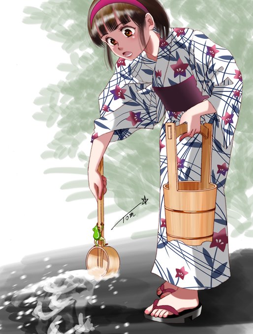 以前8月23日に #打ち水の日 みたいなのがあったけど消滅したみたい。元々日を決めてやるもんやないですわね。京都なんか年がら年中やってはるし。 (*´д`*)とにかく前からこういうのが描きたかったので描けて嬉しい♬柄も可愛くデザインできたし♪ #1日一点とにかく描く #今日は何の日