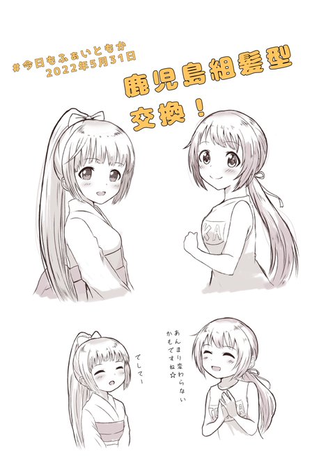 ずっと言い続けてる、くのいち智香ちゃんをもう一度言ってもいいですか……? アクションをヒトチアちゃん達3人で! 忍びの諜報活動ではお姉さんたちの補佐(応援)役ポジションでお願いします!! #今日もふぁいともか
