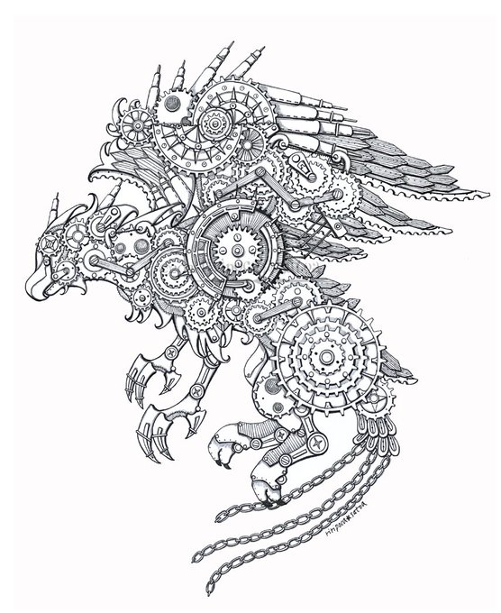 おはようございます(*´꒳`*) 今日もよろしくお願いします✨ ⚙グリフォン⚙原画 #スチームパンクイラスト #歯車イラスト #グリフォン #ペン画 #絵描きさんと繫がりたい #今日も素敵な笑顔でよろしくお願いいたします