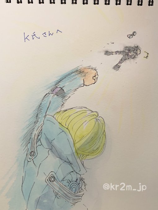 エアスケブ2: K氏さん(@000oo__oo000)からのリクエストで、『ブン殴られて吹っ飛んでる沙明』描かせていただきました。「スケブリクエストそれでホントに大丈夫ですか?」シリーズ第一弾です。ありがとうございました! #今日も美味しい水そうめん #透明水彩 #ちみ_絵