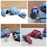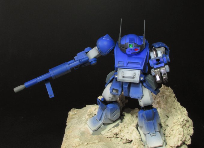 wave1/35ブルーティッシュドッグ “大河原カラーバリエーション”完成‼️ 主な工作 ・頭部レンズのクリアーパーツ置換 ・合わせ目上のリベット等再生 ・ガトリング砲口の穴拡大 ・肩付け根のポリキャップカバー作成 ・踵ホイール後嵌め分割 ・アンテナ、腹フックの金属置換 #今月作った模型晒そうぜ