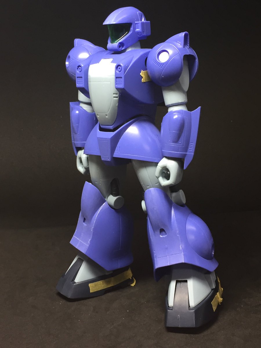 百改式ディランザ進捗 エアブラシ塗装とスミイレは終了。後は細部リタッチ&デカール&トップコート。ちなみに塗装中、シールドにスパイク兼ラックを新設。シールドにはワンポイントつけたかったので丁度よかった😆 #今月完成しそうにないプラモ晒そうぜ