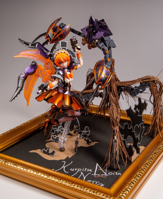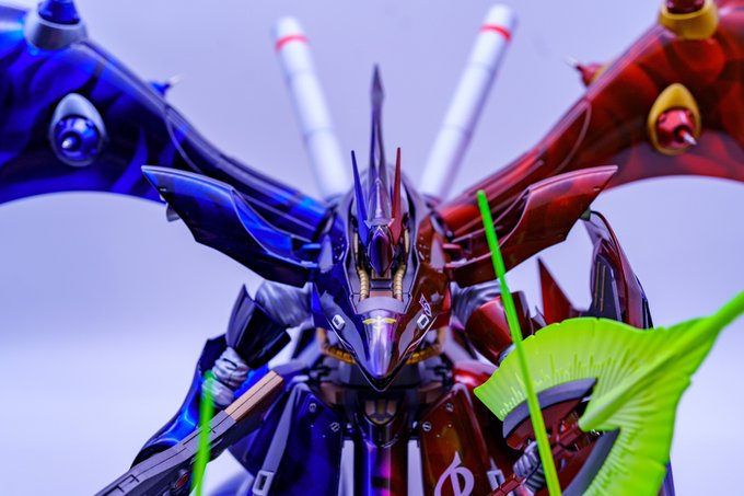 #今週の模型ショーケース1回目 #メガミデバイス の #スサノヲ で参加! 「キルラキル」から着想を得て、狂暴さ極まりないふうにしました! クリアーとツヤ消しで各色にメリハリをつけたのと、あえて黄色でスミ入れしたのがアクセントになっていると思います! twitter.com/HobbyTBox/st…