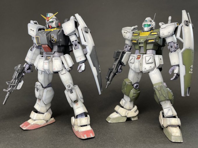 部品取りキット供養、旧HGUC陸戦型ガンダム&パワードジム エゥーゴ仕様 完成です! 10年ほど放置の上、紆余曲折を経たましたがなんとか完成品にすることができましたw せっかくなのでフォロワーさんのタグに便乗させていただきます! リプに続きます #ガンプラ #今週の模型ショーケース1回目