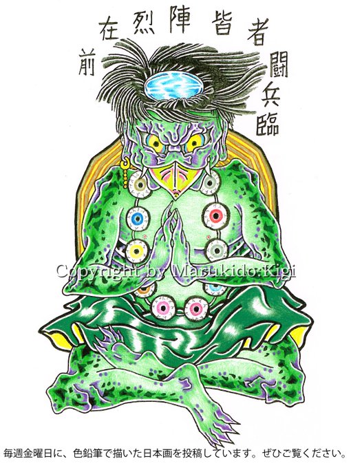 【日本妖怪の威厳!】 自然環境の守護の為に、祈り続ける河童! #悟り #スピリチュアル #日本画 #イラスト #色鉛筆画 #Illustration #刺青 #イラスト好きと繋がりたい #絵描きさんと繫がりたい #ウクライナ #仏教 #マインドフルネス #エコロジー #ArtistOnTwitter #妖怪 #うつ #artmoots #自然保護