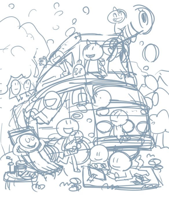 堀江さん @horie_atsushi が面白そうなタグつけてたので僕も便乗〜😁 ・アイデアスケッチ(何が描きたいのか自分しかわからないレベルの落書きだけど、作業的にはここが一番ツライ) ・ラフ(仕事の時はこのラフをクライアントに見せる) ・ペン入れ ・着色 #仕上がりとラフを同時にアップしてみよう